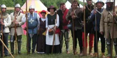 Les membres de la compagnie présentent la reconstitution d'un camp médiéval du XIVème siècle composés de cinq tente et d'une dais.